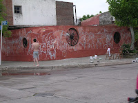 Algunos niños me ayudaron en forma determinante para poder realizar el mural. Los vecinos comenzaron a acercarse y saludarme cuando el color y las formas reconocibles comenzaron a aparecer.